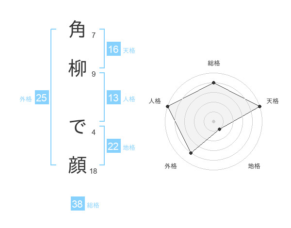 角柳 で顔さんの総格は38画の4点!