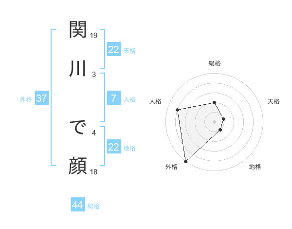 関川 で顔さんの総格は44画の2点!