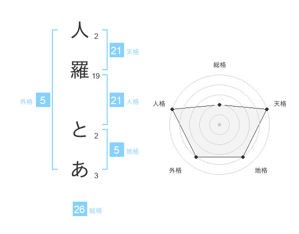 人羅 とあさんの総格は26画の2点!