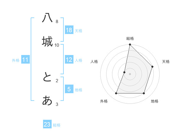 八城 とあさんの総格は23画の5点!