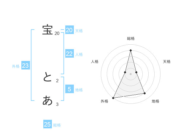 宝 とあさんの外格は23画の5点!