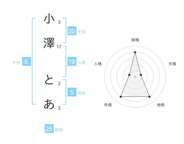 小澤 とあさんの天格は20画の1点!