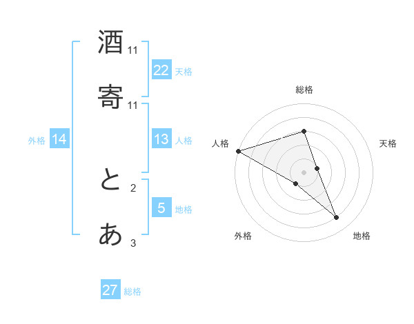 酒寄 とあさんを姓名の画数から五運を鑑定