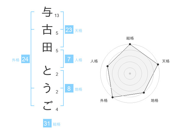 与古田 とうごさんの外格は24画の5点!