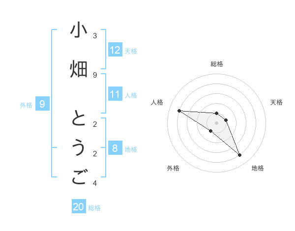 小畑 とうごさんを姓名の画数から五運を鑑定