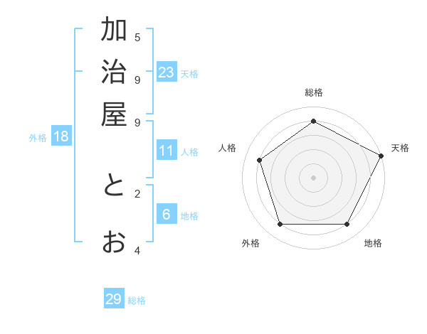 加治屋 とおさんを姓名の画数から五運を鑑定