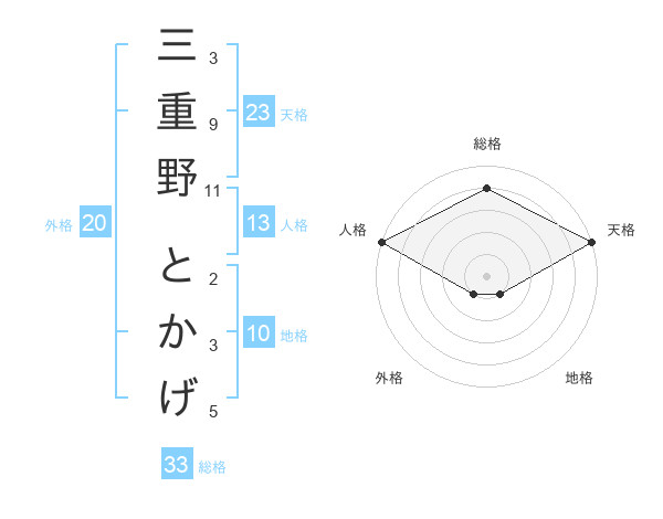 三重野 とかげさんを姓名の画数から五運を鑑定