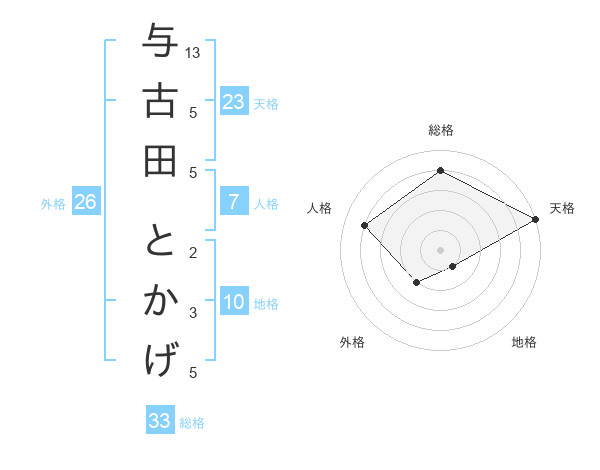 与古田 とかげさんを姓名の画数から五運を鑑定