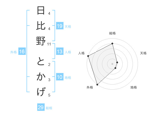 日比野 とかげさんの総格は29画の4点!