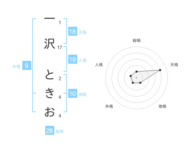 一沢 ときおさんの天格は18画の4点!