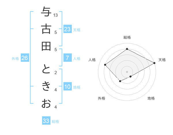 与古田 ときおさんを姓名の画数から五運を鑑定