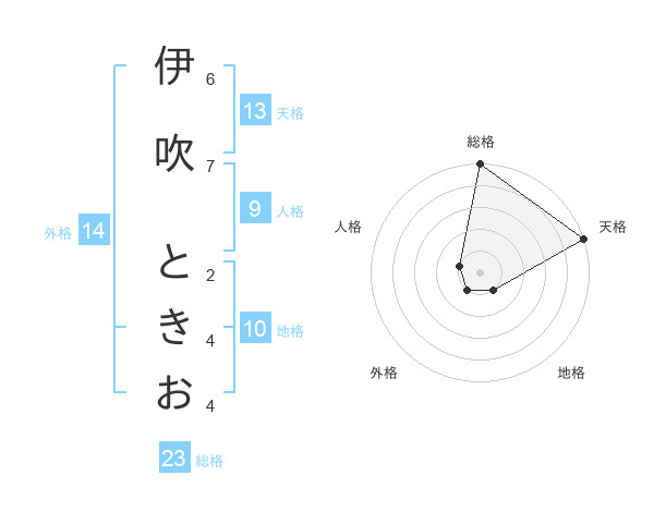 伊吹 ときおさんの総格は23画の5点!