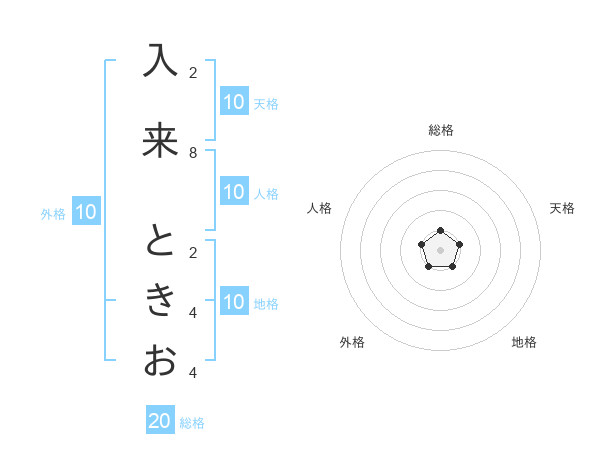 入来 ときおさんの総格は20画の1点!