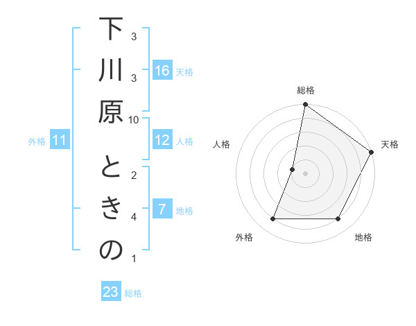 下川原 ときのさんを姓名の画数から五運を鑑定