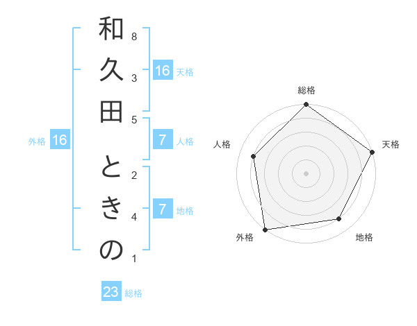 和久田 ときのさんの天格は16画の5点!