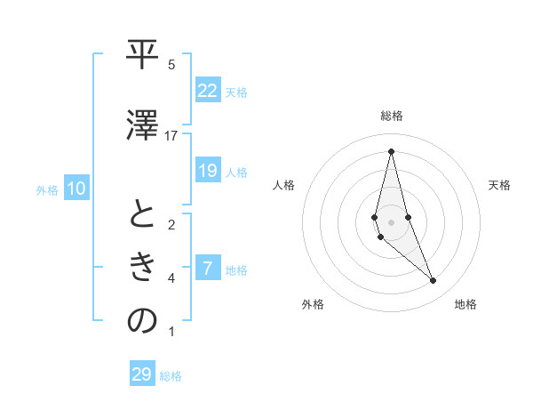 平澤 ときのさんを姓名の画数から五運を鑑定