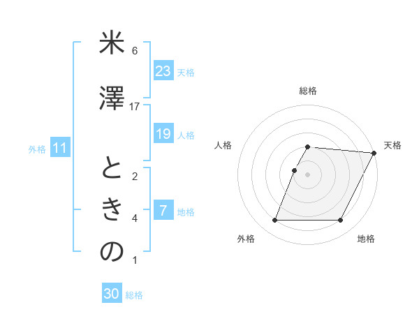 米澤 ときのさんの天格は23画の5点