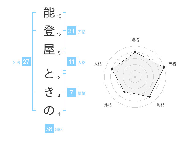能登屋 ときのさんを姓名の画数から五運を鑑定