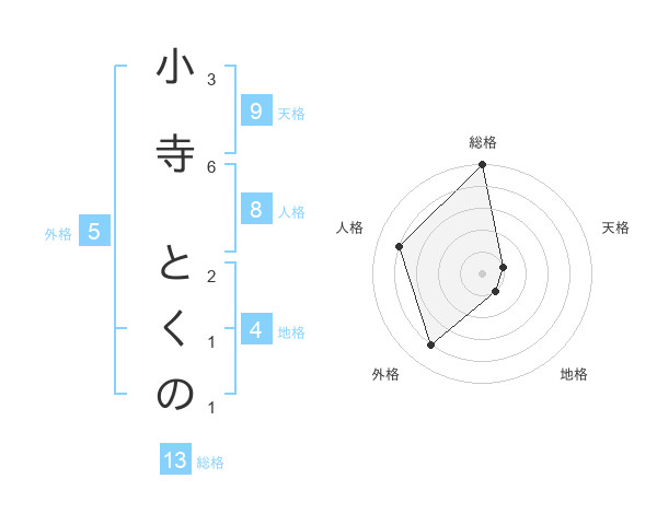 小寺 とくのさんの総格は13画の5点!