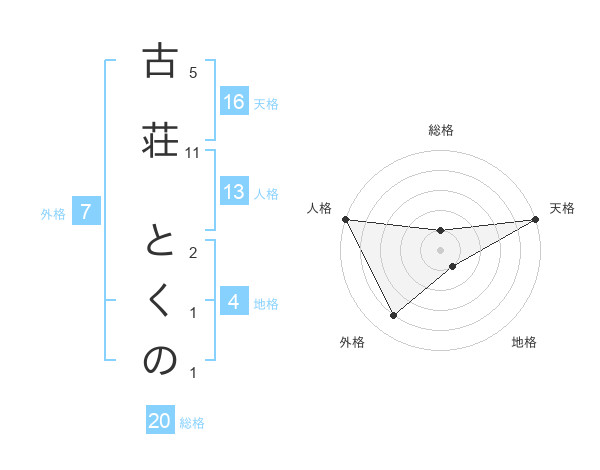 古荘 とくのさんを姓名の画数から五運を鑑定