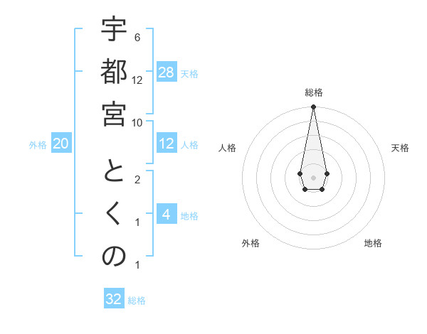 宇都宮 とくのさんの総格は32画の5点!