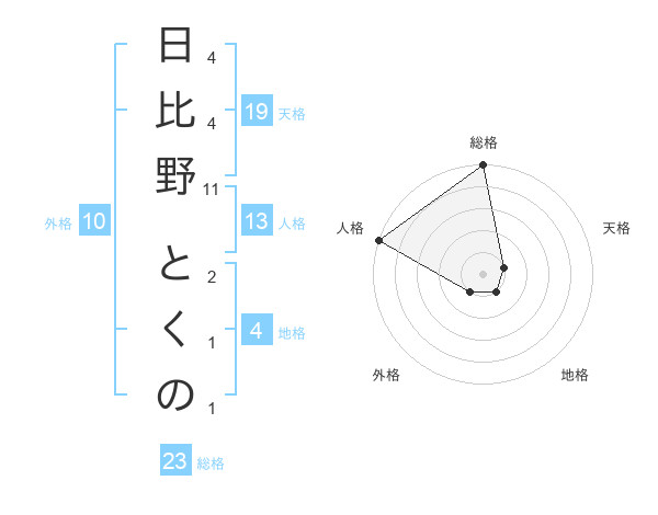 日比野 とくのさんを姓名の画数から五運を鑑定