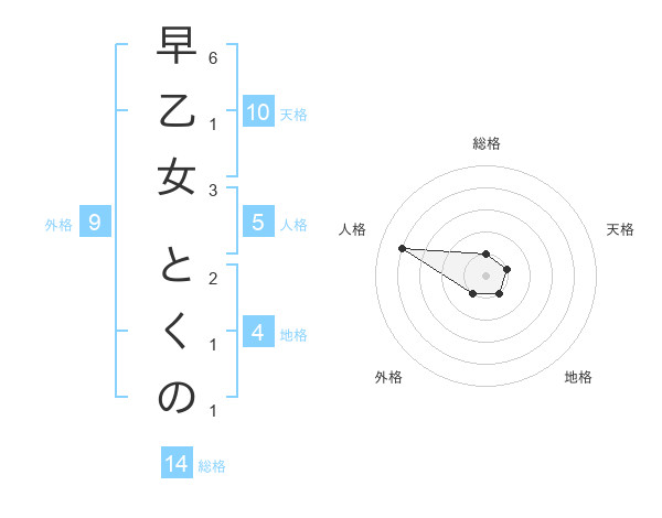 早乙女 とくのさんの総格は14画の1点!