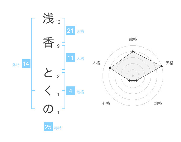 浅香 とくのさんを姓名の画数から五運を鑑定