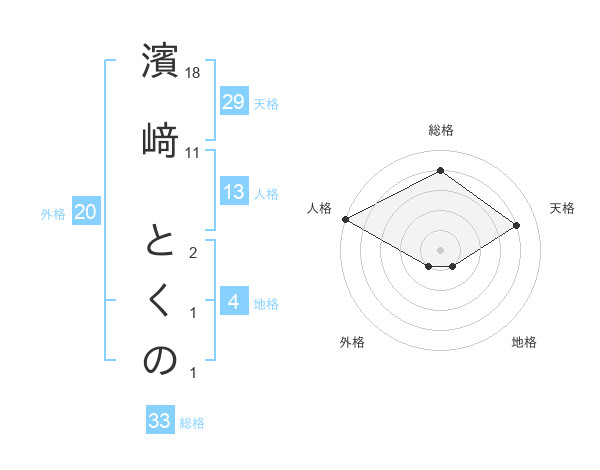 濱﨑 とくのさんを姓名の画数から五運を鑑定