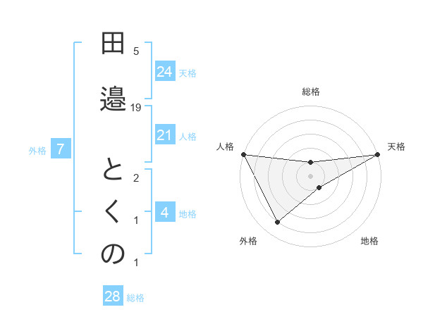 田邉 とくのさんを姓名の画数から五運を鑑定