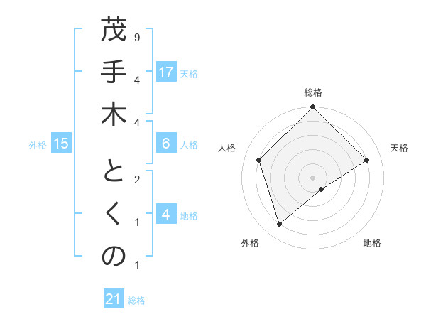 茂手木 とくのさんの天格は17画の4点!