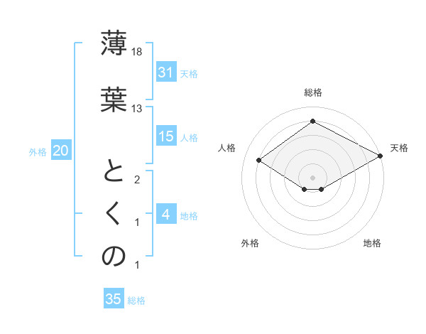 薄葉 とくのさんを姓名の画数から五運を鑑定