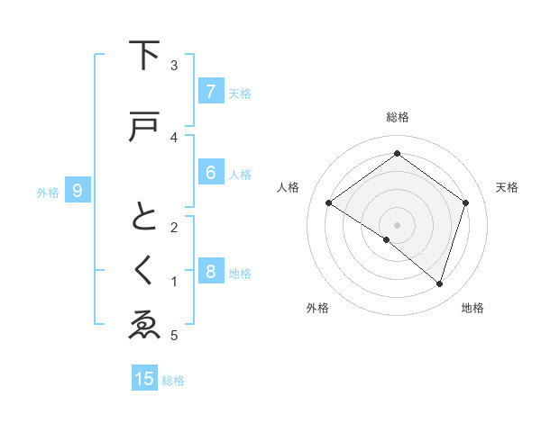 下戸 とくゑさんを姓名の画数から五運を鑑定