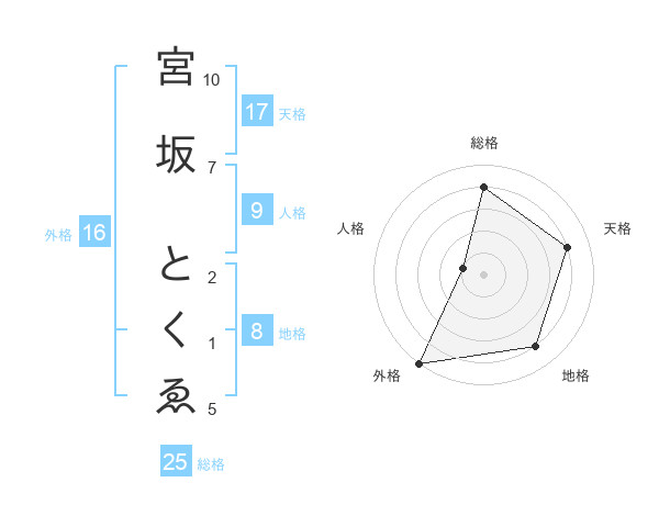 宮坂 とくゑさんを姓名の画数から五運を鑑定