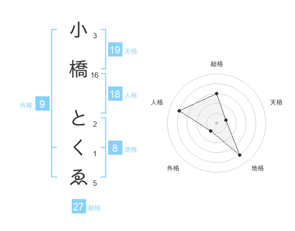小橋 とくゑさんを姓名の画数から五運を鑑定