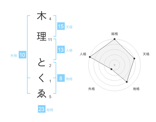 木理 とくゑさんの総格は23画の5点!