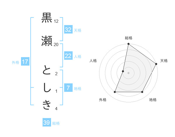 黒瀬 としきさんを姓名の画数から五運を鑑定