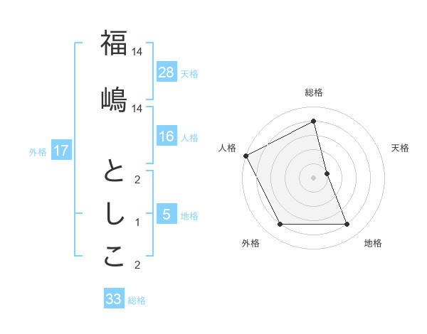 福嶋 としこさんの外格は17画の4点!