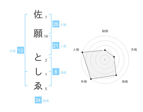 佐願 としゑさんの外格は13画の5点!