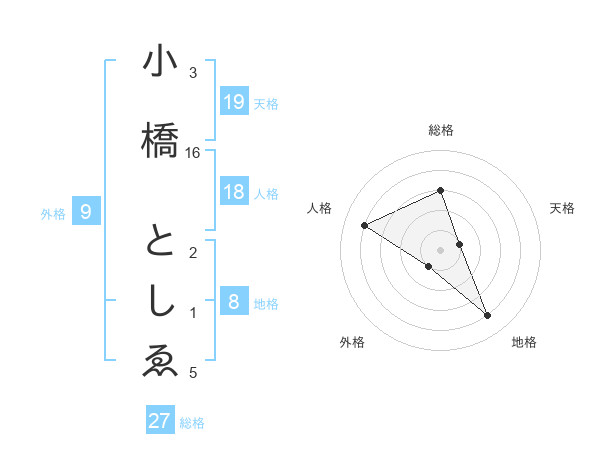 小橋 としゑさんを姓名の画数から五運を鑑定