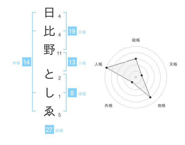 日比野 としゑさんを姓名の画数から五運を鑑定