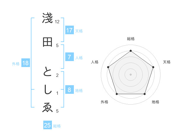 淺田 としゑさんを姓名の画数から五運を鑑定