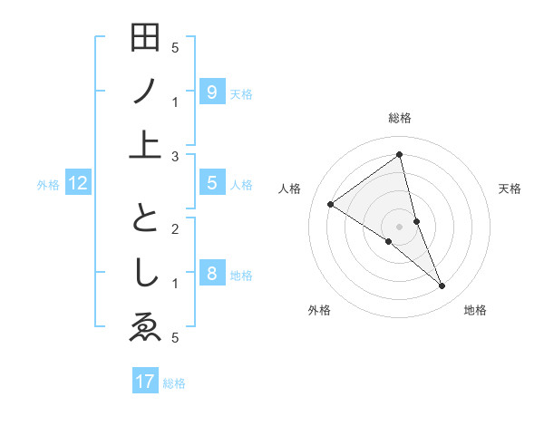 田ノ上 としゑさんの総格は17画の4点!