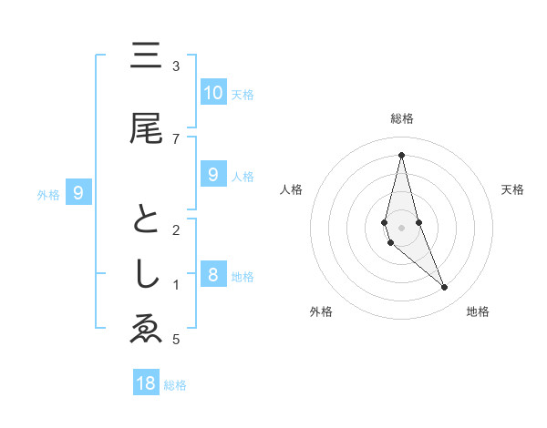 三尾 としゑさんを姓名の画数から五運を鑑定