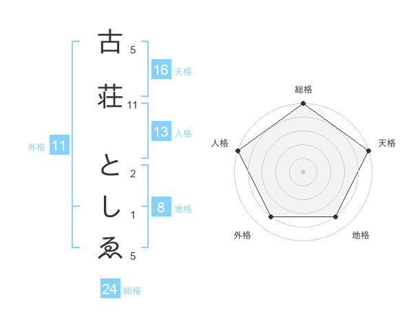 古荘 としゑさんを姓名の画数から五運を鑑定