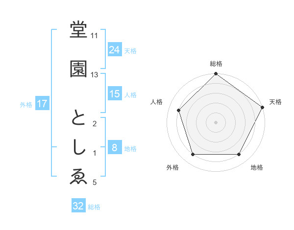 堂園 としゑさんの総格は32画の5点!