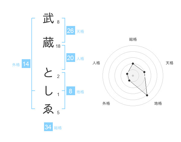 武蔵 としゑさんを姓名の画数から五運を鑑定