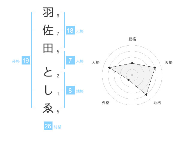 羽佐田 としゑさんの総格は26画の2点