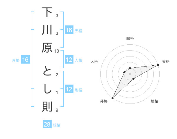 下川原 とし則さんの外格は16画の5点!