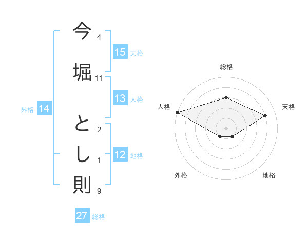 今堀 とし則さんを姓名の画数から五運を鑑定